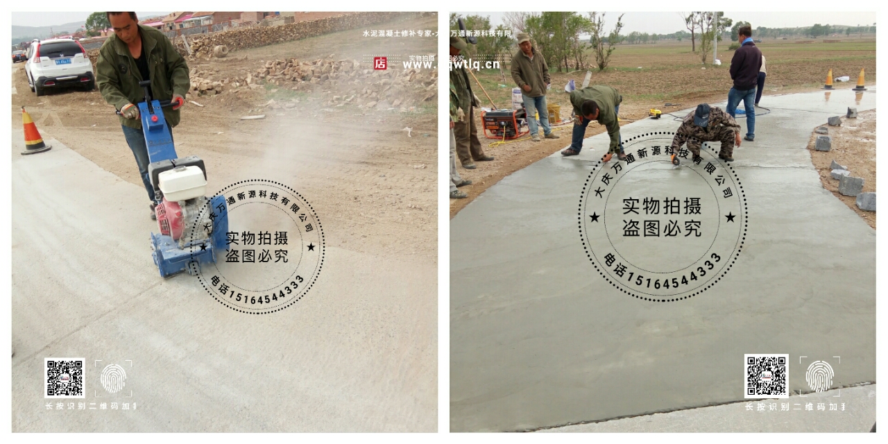 大慶萬通新源科技有限公司獨有的混凝土路面高強速補料,是水泥混凝土路面病害修復(fù)的好材料。疲勞、凍融循環(huán)、彎曲壓力、滲水和基層破壞等原因都會引起水泥路面的破損,從而帶來高昂的維護費用。與以往的剛性修補方法不同,混凝土水泥路面維修速補膠提供了一種獨特的柔性修補產(chǎn)品和技術(shù),高柔性、高抗拉性,可跨伸縮縫施工和高抗壓性使得混凝土快補產(chǎn)品為水泥混凝土路面提供了******性的修補。傳統(tǒng)的剛性修補方案,如環(huán)氧砂漿和快干水泥產(chǎn)品,由于其自身的粘結(jié)失效,抗疲勞性低以及與原路面不同的伸縮系數(shù),修補面會在短時間內(nèi)失效或產(chǎn)生新的裂縫,需要反復(fù)修補,有效期短且費用高昂。大慶萬通新源科技有限公司的混凝土水泥路面維修速補膠可以隨原路面一起伸縮,移動,從而避免了粘結(jié)失效和產(chǎn)生新裂縫。萬通快補產(chǎn)品優(yōu)異的粘結(jié)性、柔韌性和高防滑性,特別適用于水泥路面的淺層粘合修補,多邊角混凝土板層修補,跨伸縮縫修補以及路面沉陷修補。萬通混凝土病害修補料針對混凝土起皮起沙、斷板裂縫、蜂窩麻面、坑槽露石子、漏筋掉皮、橋梁的掉皮漏筋快速通車使用時間長。應(yīng)用萬通快補產(chǎn)品,施工后一天就可以恢復(fù)交通。大慶萬通新源科技有限公司的萬通水泥路面維修速補膠適用于高速公路、機場路面、農(nóng)村村村通路面、廠坪、學(xué)校操場、市區(qū)公路、小區(qū)路面、橋梁、水泥路面的修補。使用萬通特快補材料修補路面可以一勞永逸! 水泥地面起砂怎么辦,混凝土修補劑混凝土地面起砂,混凝土地面修補,地面起砂怎么辦,
